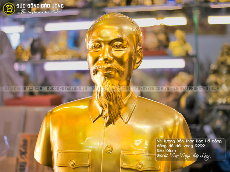 Các tư liệu về bác đều là các tư liệu quý giá giúp việc tạo mẫu đạt chuẩn nhất. Đây là mẫu tượng bác độc quyền, số lượng sản xuất có hạn. Sản phẩm có chiều cao tổng thể 6 tấc - 61cm phù hợp với mọi không gian. Bề mặt được xử lý kỹ lưỡng, đảm bảo độ dày dặn, độ mịn. Tượng vô cùng bền và có giá trị lớn