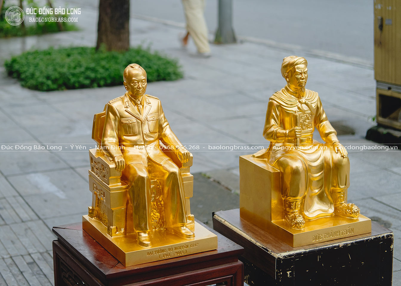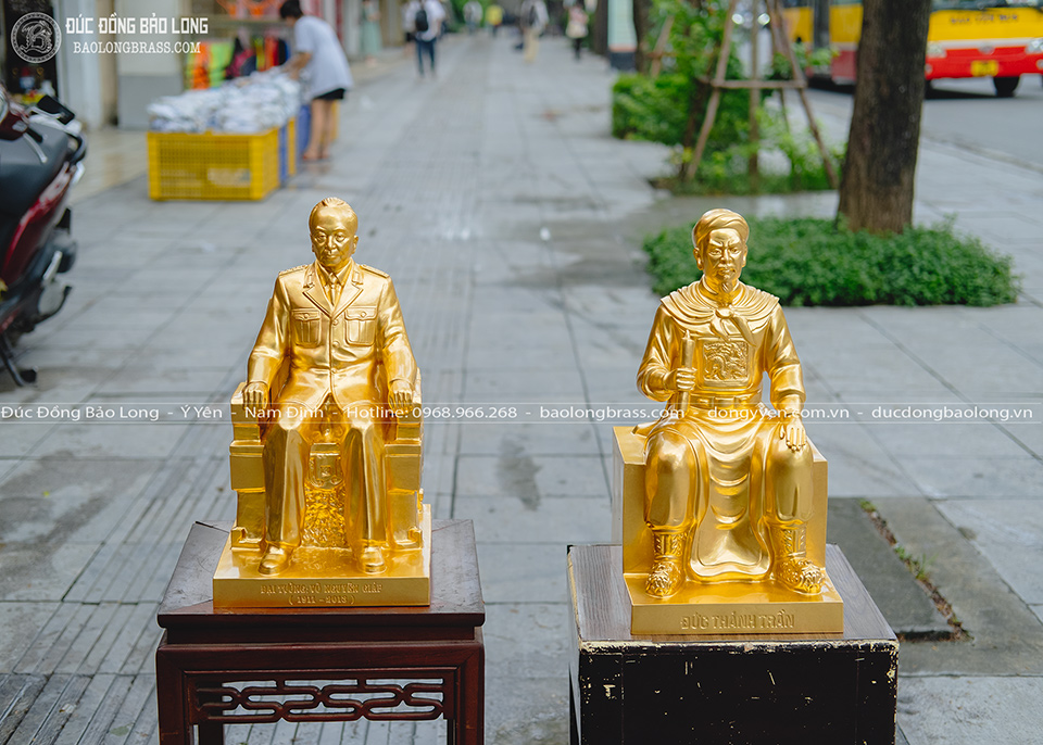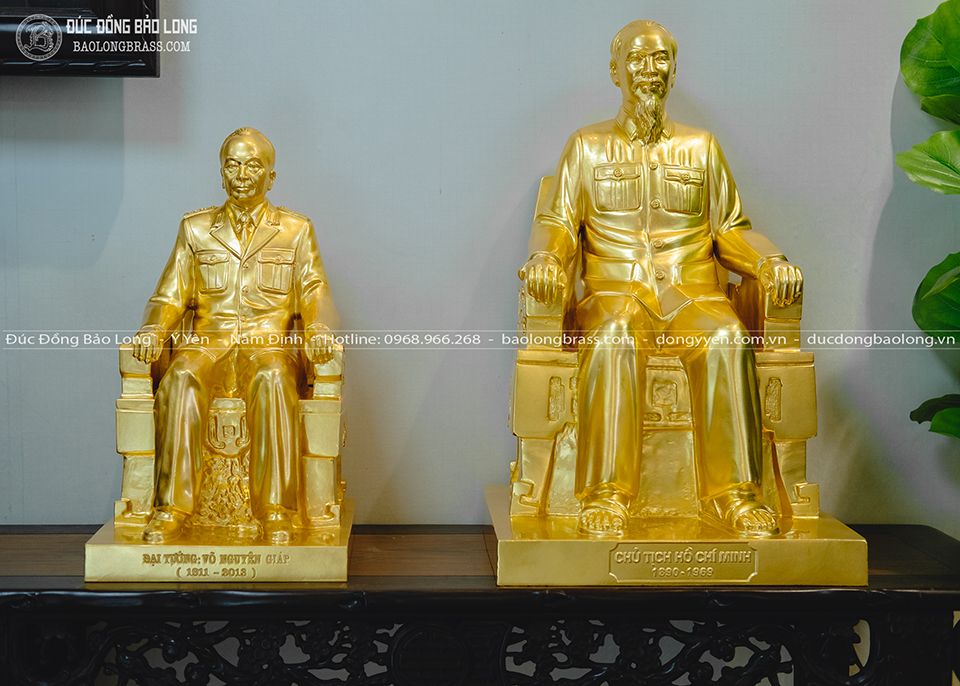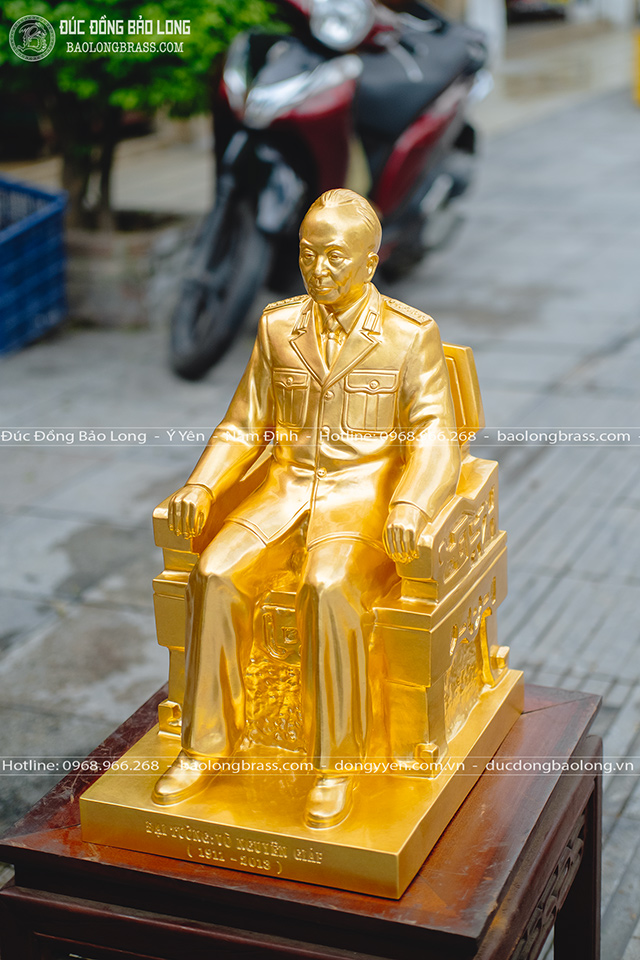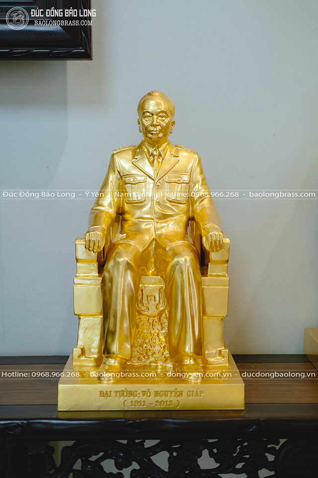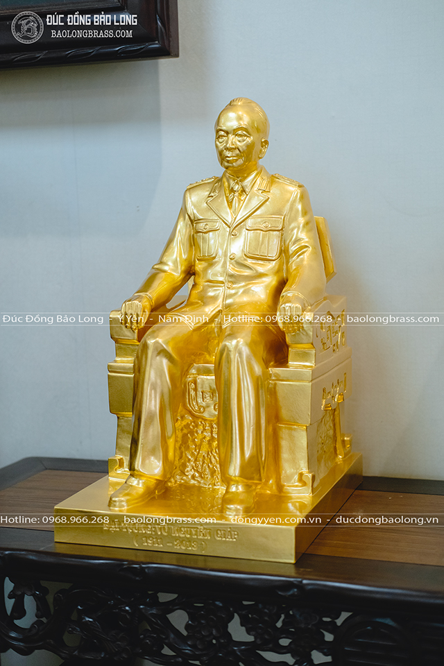 Tượng đồng Võ Nguyên Giáp Dát Vàng cao 48cm mới đây được Bảo Long chế tác. Pho tượng được đúc thủ công hoàn toàn từ đồng đỏ thanh khiết, các chi tiết tạc, đúc tinh tế, hoàn thiện chỉnh chu.