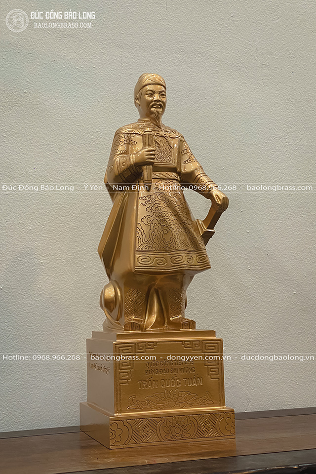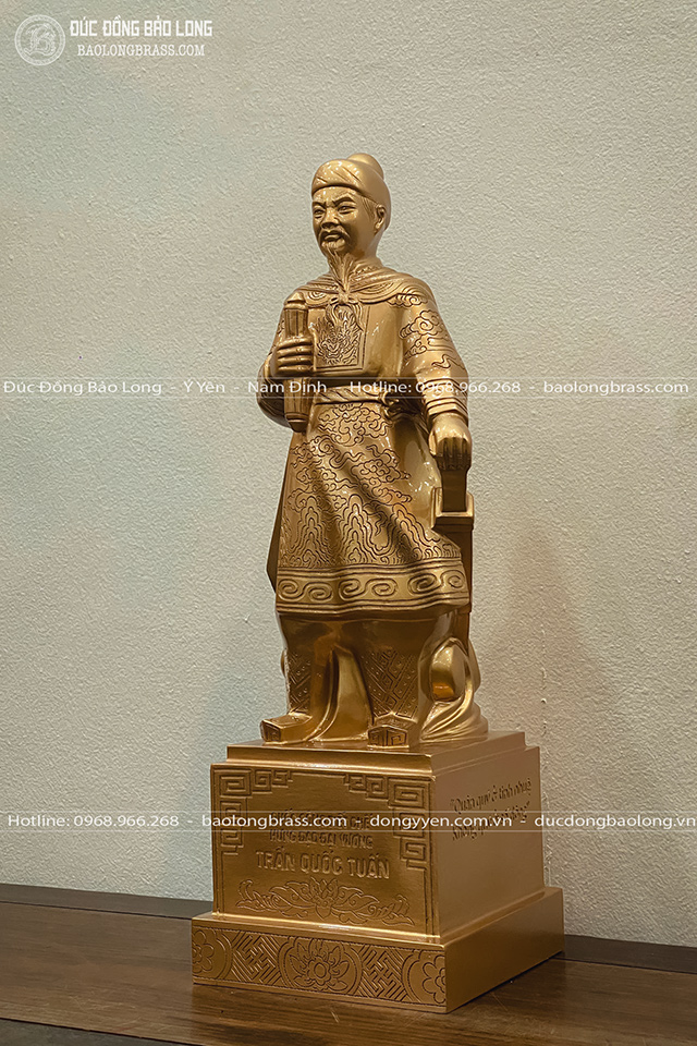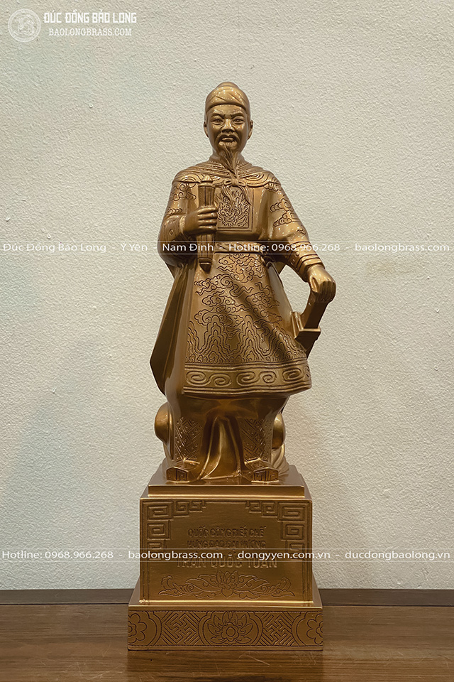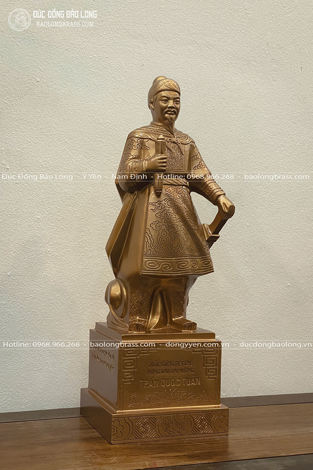 Phiên bản Tượng Đồng Trần Hưng Đạo bệ vuông cao 5 tấc - 48cm được các nghệ nhân Đúc Đồng Bảo Long tâm huyết tạo dựng. Ròng rã suốt 02 năm lên ý tưởng và trải qua hơn 3 tháng chế tác, chúng tôi lần đầu tiên đem đến thị trường mẫu tượng đồng mang dấu ấn thời gian.
